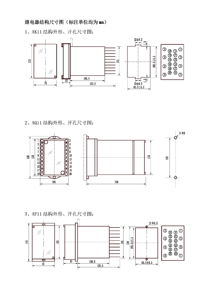 • Relay structure size chart